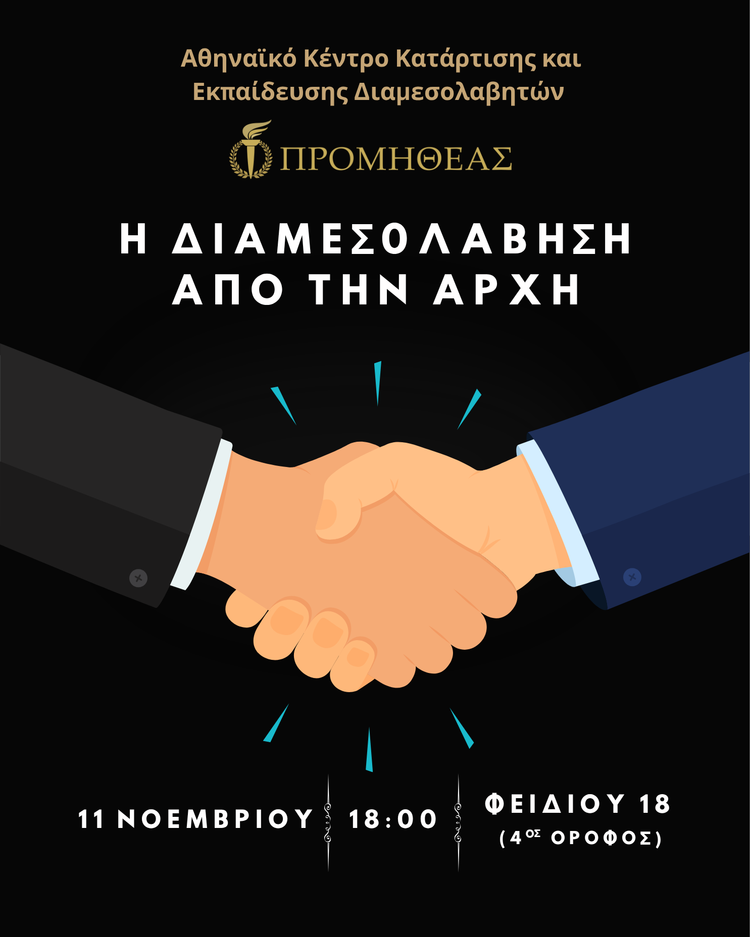 Η Διαμεσολάβηση από την Αρχή! Α.Κ.Κ.Ε.Δ. – ¨ΠΡΟΜΗΘΕΑΣ”📍 Φειδίου 18 📅11 Νοεμβρίου ⏰18:00
